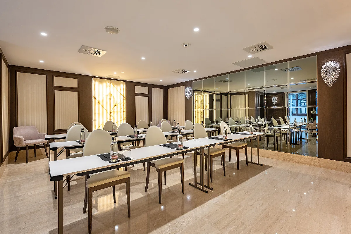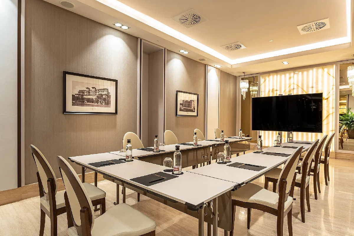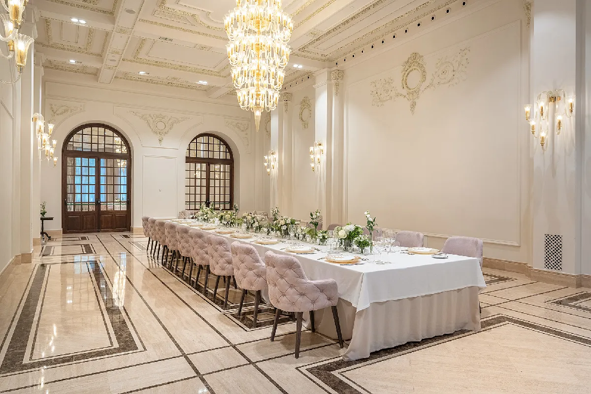 Gran Hotel Miramar *****GL provides 10 versatile event rooms totaling approximately 1,700 m², plus terraces and gardens for outdoor events overlooking the sea and city. The largest spaces can host up to 600 guests, while historic interiors offer elegant alternatives for conferences or celebrations in any weather.